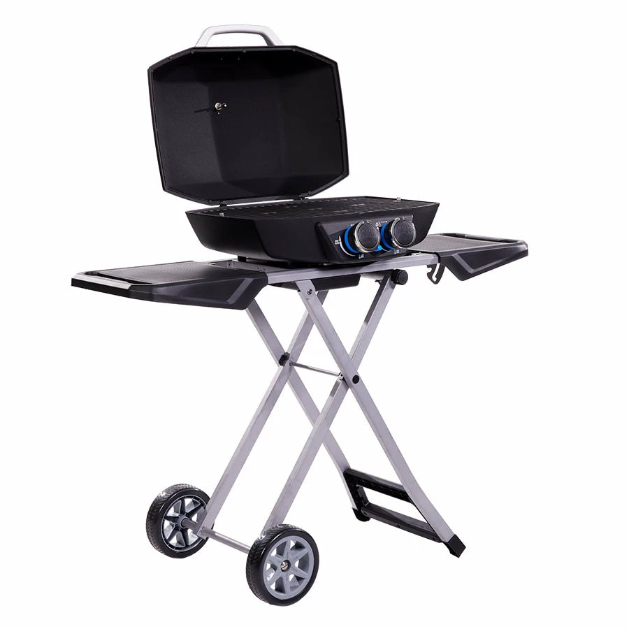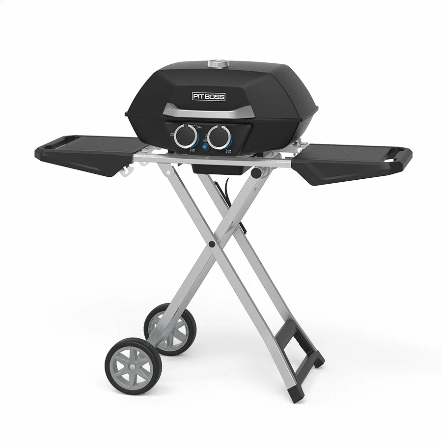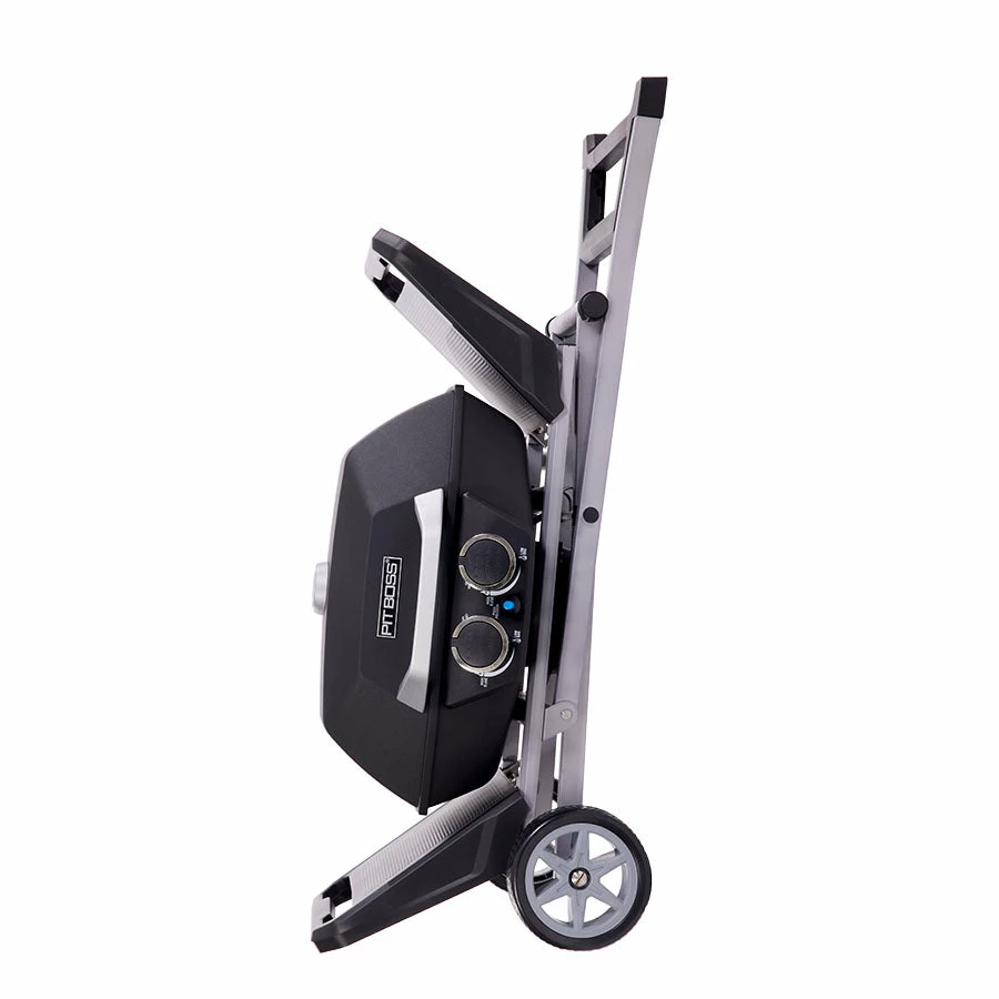 Take the bold flavor of Pit Boss grilling along on your next adventure with the Pit Boss 2-Burner Gas Grill. Complete with a collapsible cart, this grill is ready to travel – no matter the destination. With 290 square inches of cooking space, it’s the perfect size to take out on the patio or balcony but can also accommodate an entire meal. Its lightweight design makes this grill easy to transport, while its cast aluminum body and lid offer even heat distribution for perfect cooks every time. Â
