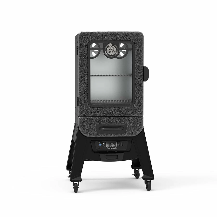 There’s a new boss in town – introducing the Pit Boss® 2-Series Digital Electric Smoker. Gone are the days when your smoker was just another black box. The 1650-watt smoker features a large front window that eliminates the need for peek-a-boo cooking and an easy to read digital controller, with a stunning silver finish. Its innovative design improves upon the features of a classic smoker by incorporating a multiple position racking system that ensures you’ll have enough room to smoke anything your heart (or stomach) desires.