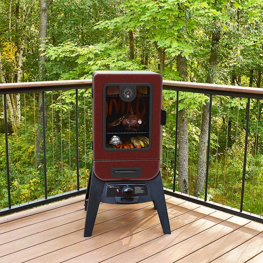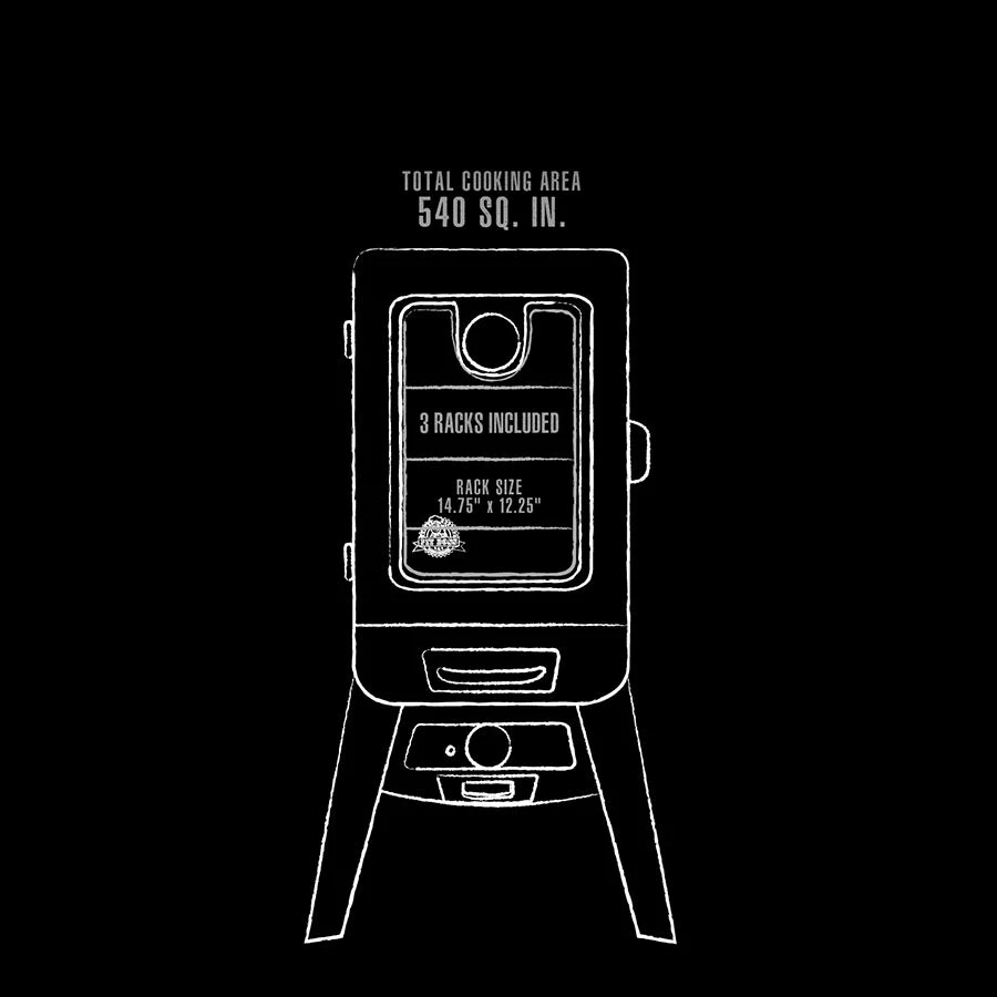 Experience how Pit Boss® Grills is redefining the smoker industry with the 2-Series Vertical Gas Smoker. The large front window and door thermometer eliminate the need for peek-a-boo cooking. Master the ability to infuse flavor into your smoker with the oversized front load wood chip tray, offering up to 2 hours of cooking time per load and smoke like a pro from your own backyard.