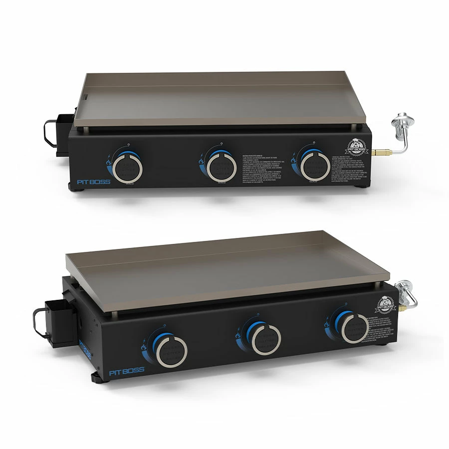 Meet the new lineup of Pit Boss® Portable Gas Griddles. Each Pit Boss 3-Burner Tabletop Griddle is outfitted with a durable cooktop and robust BTU value for an experience that’s Bigger, Hotter, Heavier® than the rest. Take delicious meals wherever you roam with this lightweight, portable griddle, featuring a 3mm thick surface. Enjoy 389 square inches of cooking space to prep everything from breakfast, lunch, or dinner.