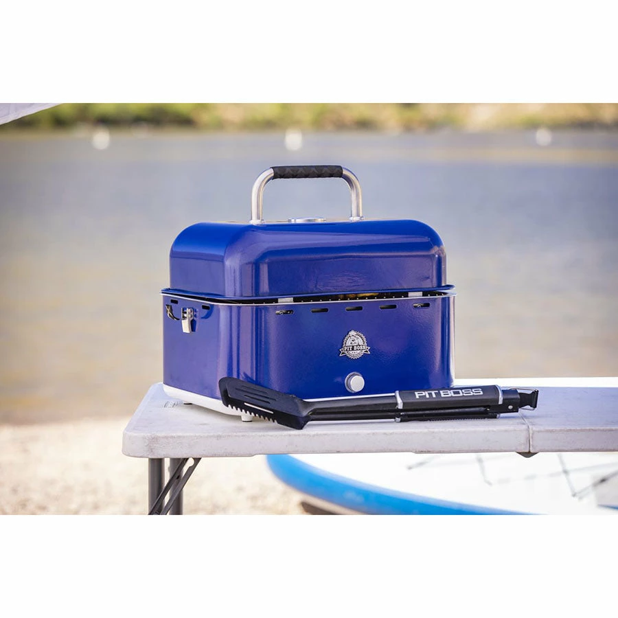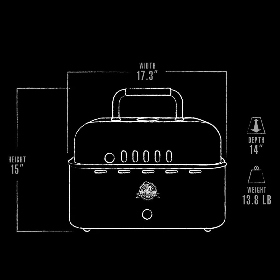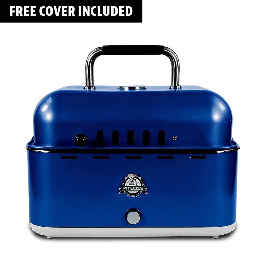 Grill on the go with the Pit Boss Portable Charcoal grill. It is easy to use, easy to carry, small in size but mighty in heat. Fueled by premium hardwood lump charcoal, battery operated, and it includes a cover bag.