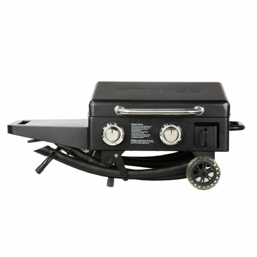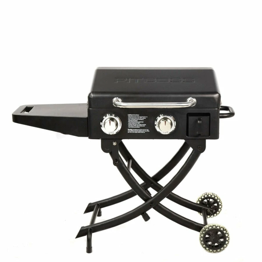 Bring Pit Boss® flavor everywhere you go with the Sportsman Portable 2-Burner Gas Griddle. Perfect for your next outdoor adventure, this grill features robust versatility in an innovative compact package so you can bring it with you to help fuel your field-to-grill lifestyle. Thanks to its foldable legs, lightweight design and latching hood, the Pit Boss® Sportsman Portable 2-Burner Gas Griddle is always ready to travel quickly and easily. 3.5mm pre-seasoned griddle top, measures 23.62″ x 13.58″ Easy front-access grease management tray so your cooking space stays clean Innovative fold-and-go design, take your griddle to the beach, park, or campsite Features a locking griddle cover top, heavy-duty side shelf with handle, folding legs with in-line wheels, and a custom-fit griddle cover Assembled Dimensions: 44.9″L x 20.8″W x 35.7″H Weight: 69.4 lb. Boxed Dimensions: 33.9″L x 20.3″W x 20.5″W Weight: 81.6 lb.