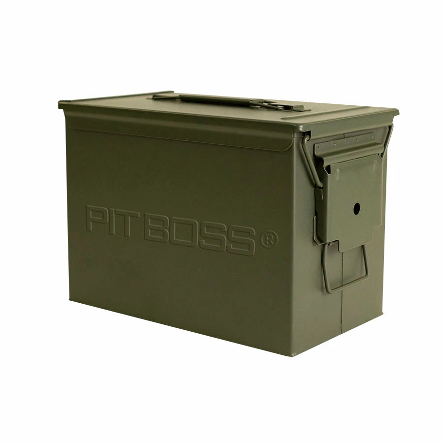 The Pit Boss Steel Ammo Can is built to last! Its design is very convenient and secure to store all your ammunition. It features heavy-duty steel with a rubber lid gasket to make sure that your bullets are protected from water and dust, and it has carrying handles designed to optimize mobility that are collapsible for easy storing and stacking.