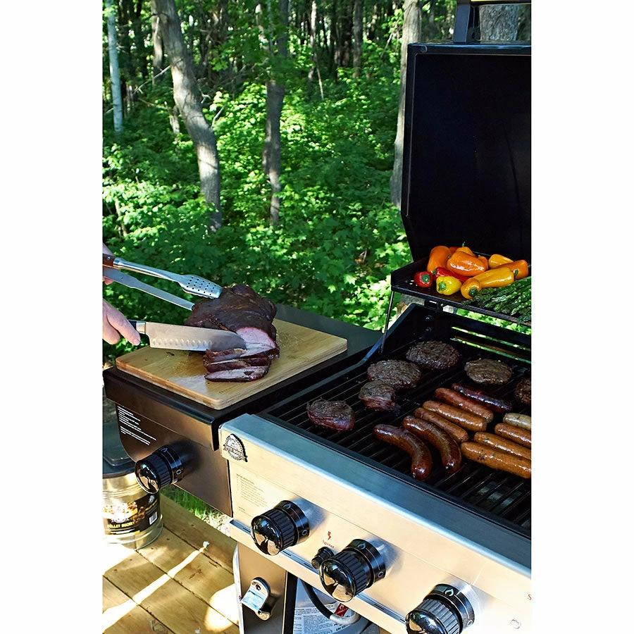 Magnetic bamboo cutting board makes outdoor grilling easier. Cut and carve without the cutting board slipping or moving. Grooved edge prevents juice from running and keeps grilling station clean. Designed to fit BBQ grill side tables. Magnetic board prevents slipping when working on side table. Attaches to any steel side tables. Grooved edge keeps work station clean and prevents spills. Hand wash with soap and water.